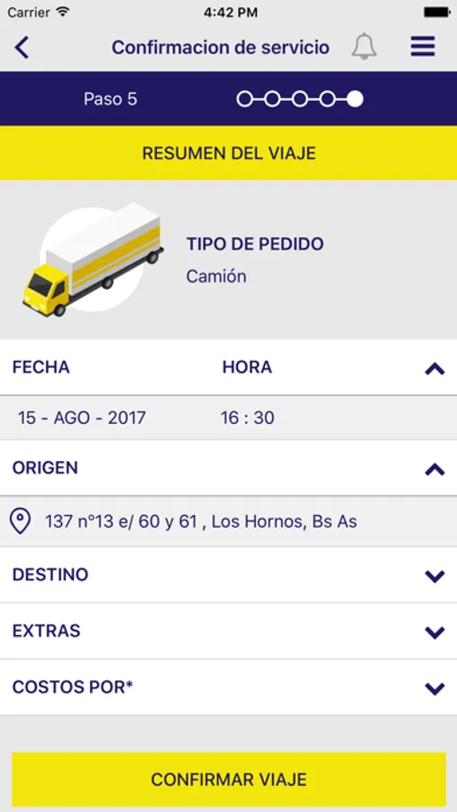 * Realizar una solicitud de viaje las 24hs, los 7 días de la semana (incluyendo domingos y feriados), pudiendo configurar todos los detales del pedido: