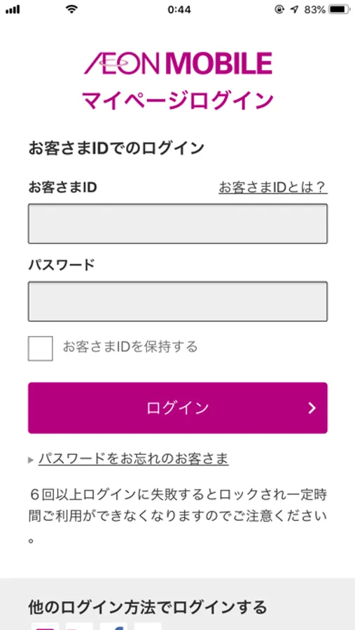 ご利用いただくには、イオンモバイルのご契約およびマイページのお客さまID・パスワードが必要です。※1