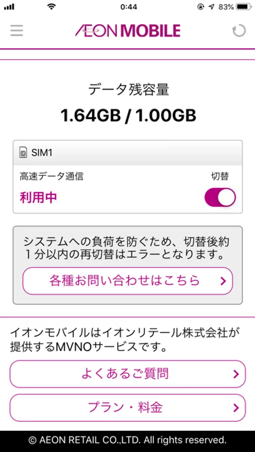 ※1 本アプリはイオンモバイルご契約日当日はログインできません。ご契約の翌日からご利用いただけます。
