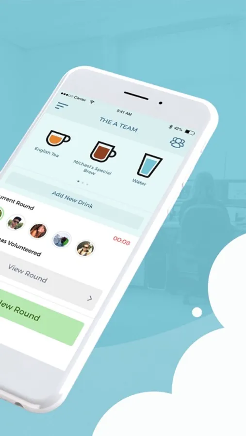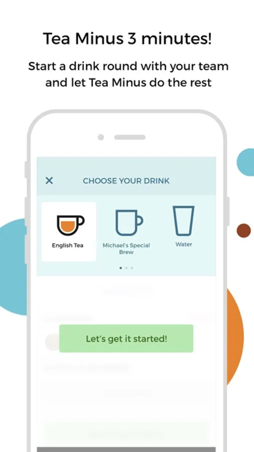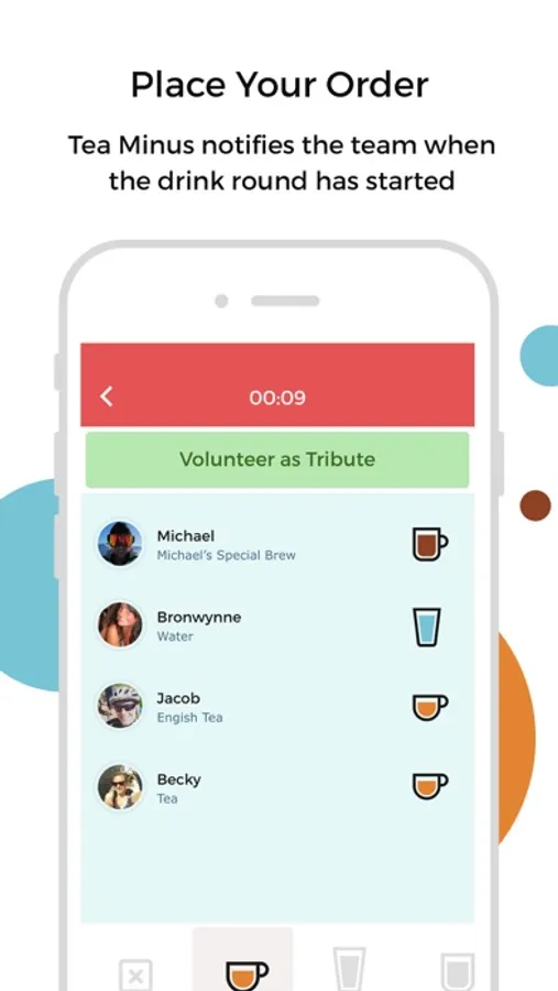 Start a drink round with your team and Tea Minus will notify them that a drink round has started.