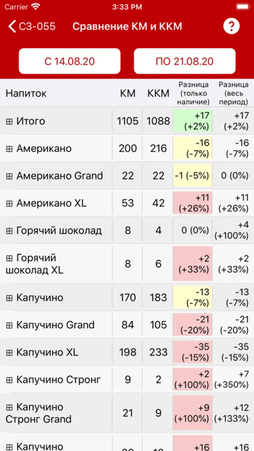 • вести статистку продаж (кол-во проданных чашек за определенный период);