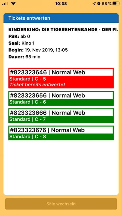 Die Scanner-App kann von cinetixx Kunden genutzt werden, um am Saaleingang eine Eintrittskartenkontrolle durchzuführen.