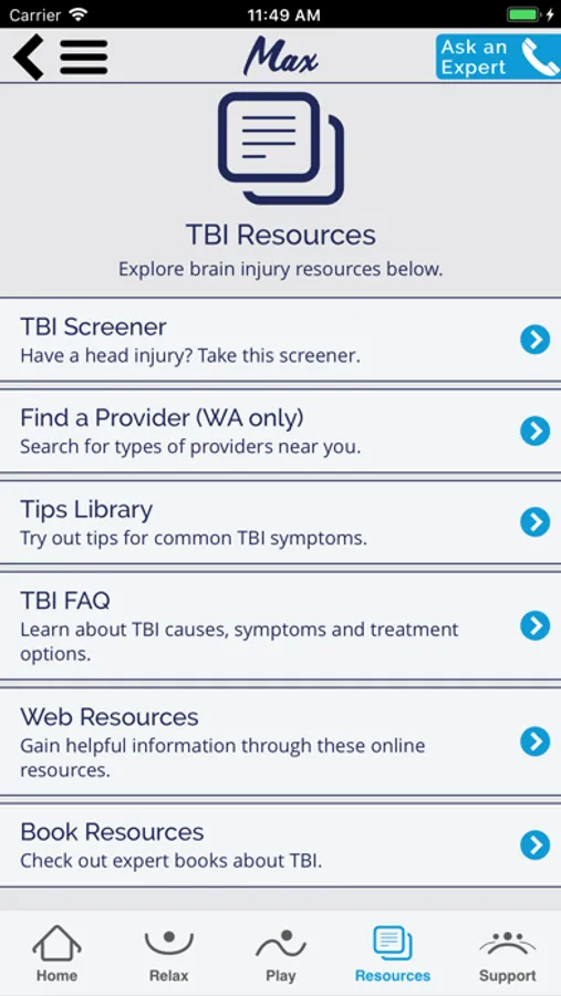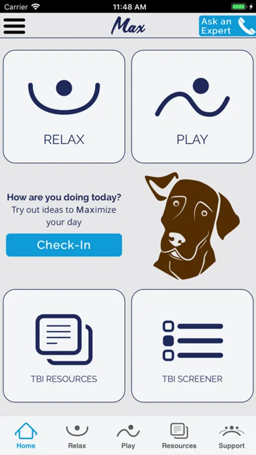 Max Impact is a reliable back-pocket support system for veterans who experience challenges from traumatic brain injuries (TBI). Much like the role a service dog plays in the life of a veteran with PTSD or TBI, “Max” helps the user manage their symptoms, learn about TBI and connect with others to share and support one another. Max Impact allows users to check in with how they are feeling, pick a current challenge they might want to work on and Max will guide them to resources that fit their needs. Max is a dependable companion to any veteran or caregiver living with TBI.