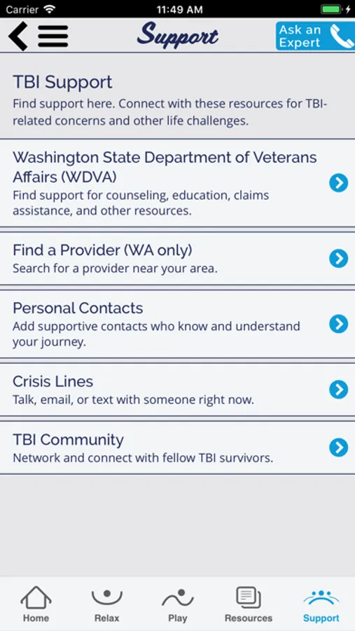 Customizable personal contacts section to list your TBI care advocates, friends and family