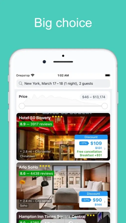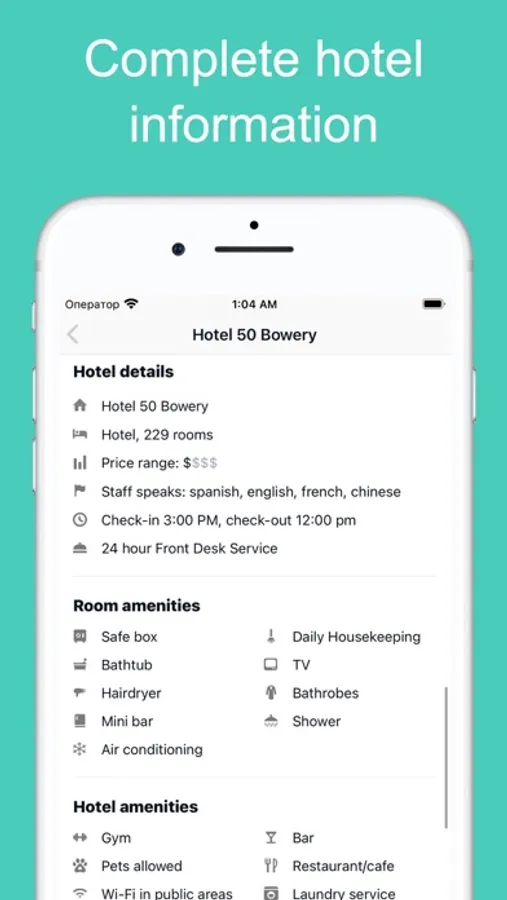 App Low Cost Hotels is a reliable guide to all hotels in the world, giving the opportunity for a few minutes to book a hotel online anywhere in the world: in Eastern and Western Europe, Asia, USA, Africa and South America.
