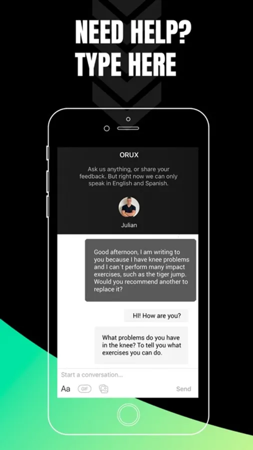At ORUX we live like the Universe, every day is different and here nothing is repeated. Our workouts are not routines. We have created an infinite physical conditioning system so that no day is boring or similar to the previous one; Additionally, we have enabled for you a chat with our online Coaches to accompany, guide and improve your training experience and interaction with our ORUX App.