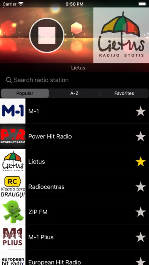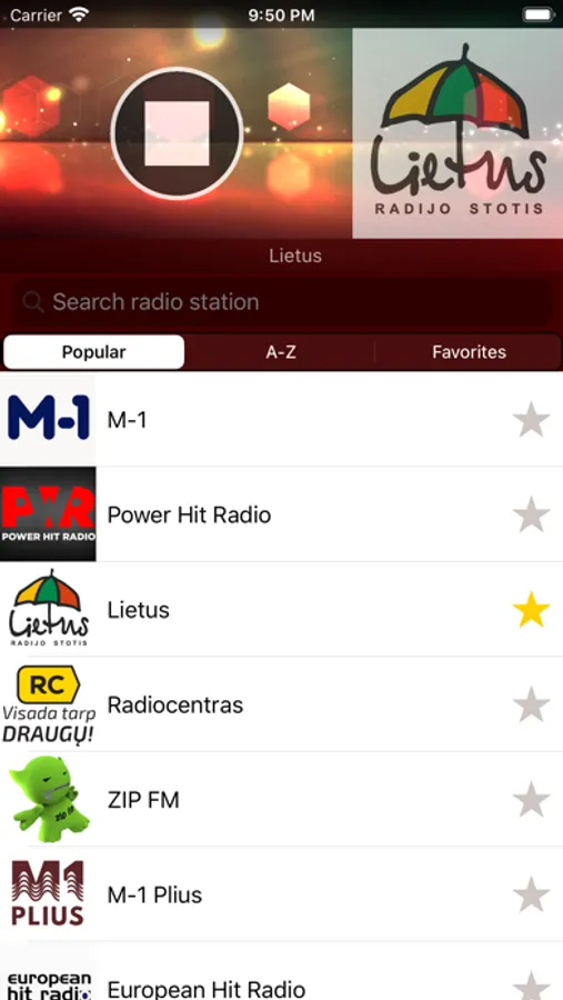 - Pasirinkite radiją, įtraukite jį į mėgstamų radijo imtuvų sąrašą ir klausykite.