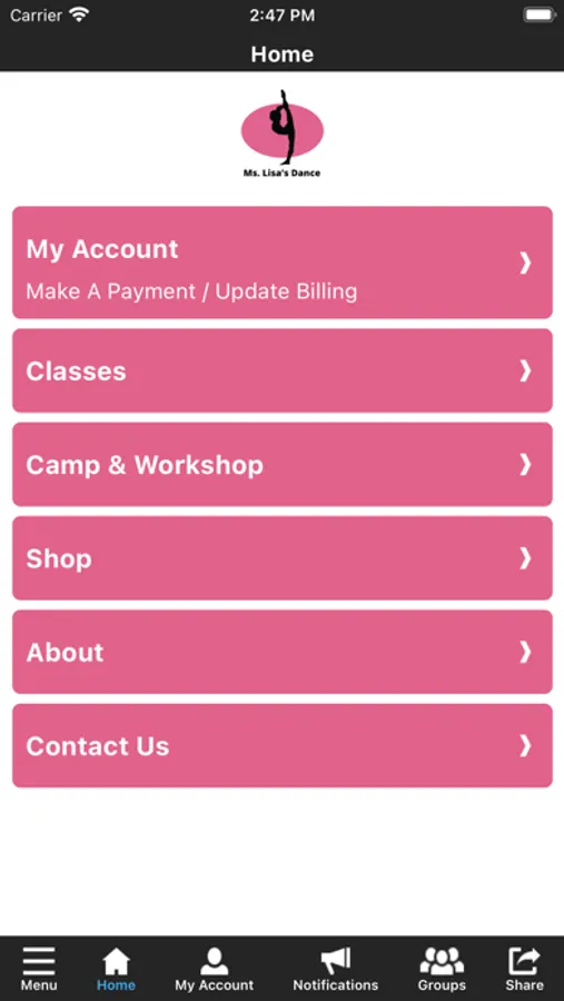 The Ms. Lisa's Dance app allows you to get notified of studio announcements, events, & reminders. Through the app you can easily access the class schedule, make payments, learn important studio info, & more!