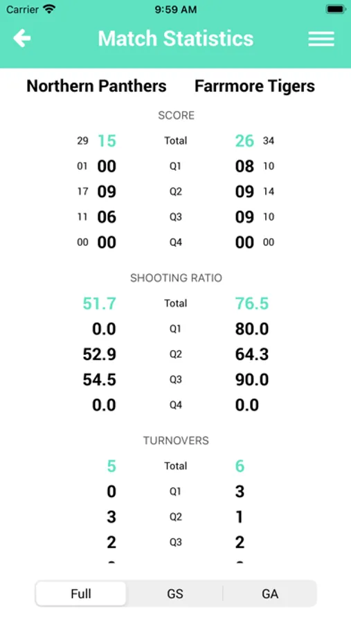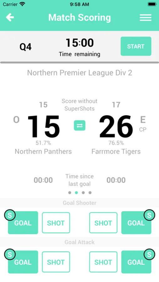 You want to watch the match and not be distracted by having to record scores in a cumbersome way. On the other hand you want to see match statistics, what the shooting percentage was, and shooting rates for both GS and GA separately either during the match or at the end.