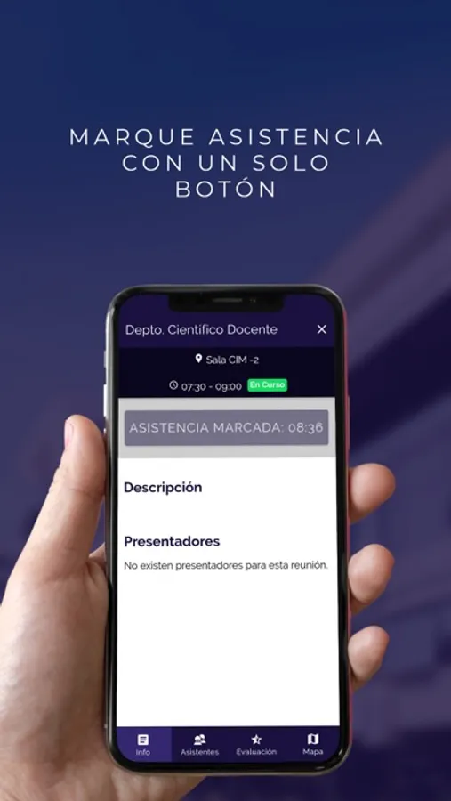 Las reuniones pueden limitarse por GPS, permitiendo marcar únicamente dentro de un radio determinado. O también se puede permitir marcar la asistencia sin limitación, pero siempre guardando las coordenadas desde donde se marcó la asistencia.