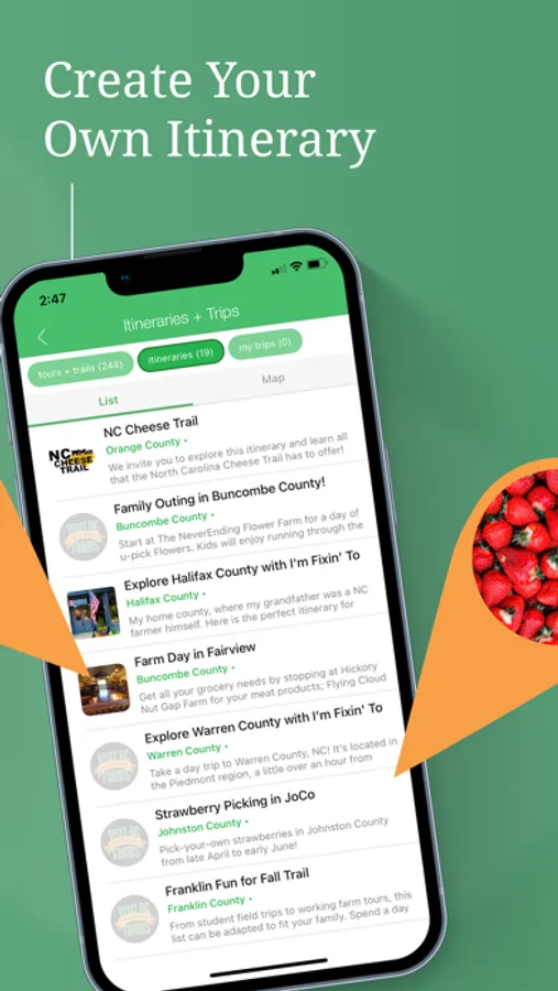 Explore North Carolina’s diverse offering of farms, products and destinations. The Visit NC Farms app is your guide to find and connect with farms and fisheries, farmers markets, pick-your-own produce, local food, lodging on farms and more. Perfect for planning a quick family activity or an extended getaway. Customize your itinerary and find out what makes agriculture in North Carolina so special.