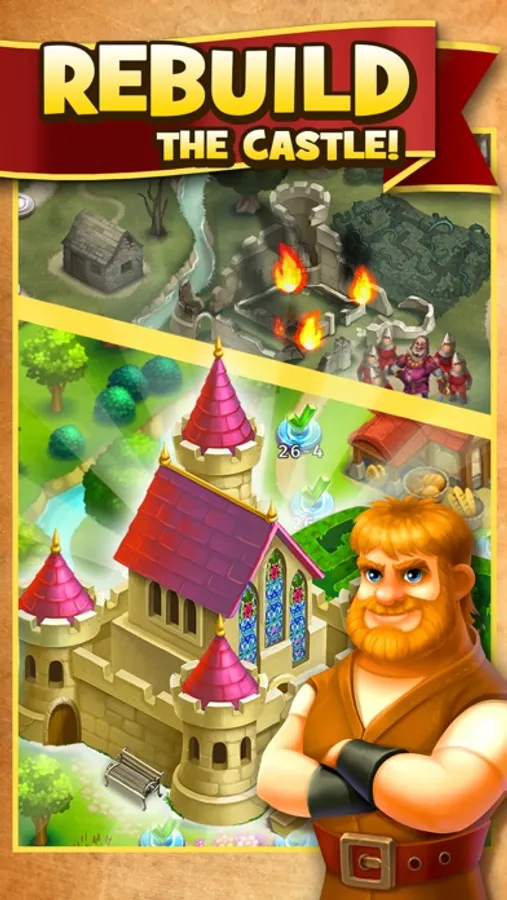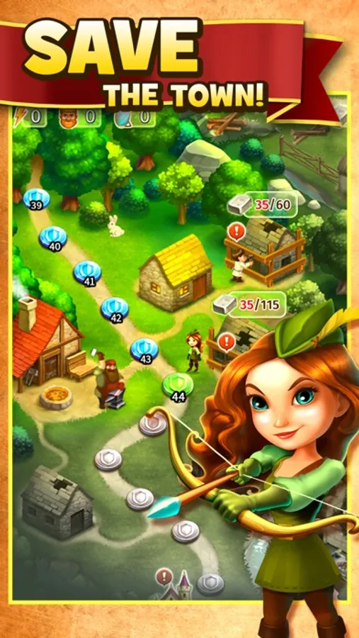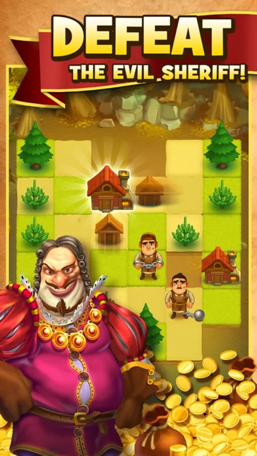 Why match when you can MATCH & MERGE? Join Robin Hood on her quest to defeat the evil Sheriff of Nottingham, save the townsfolk and rebuild the castle! Merge combinations of three or more to create bigger and better objects while earning gold along the way. Use merging mechanics to help you solve puzzles, finish quests, give to the poor and restore order in Sherwood Forest. Enjoy triple the strategy and fun of your typical match-3 game in this brand new puzzle adventure!