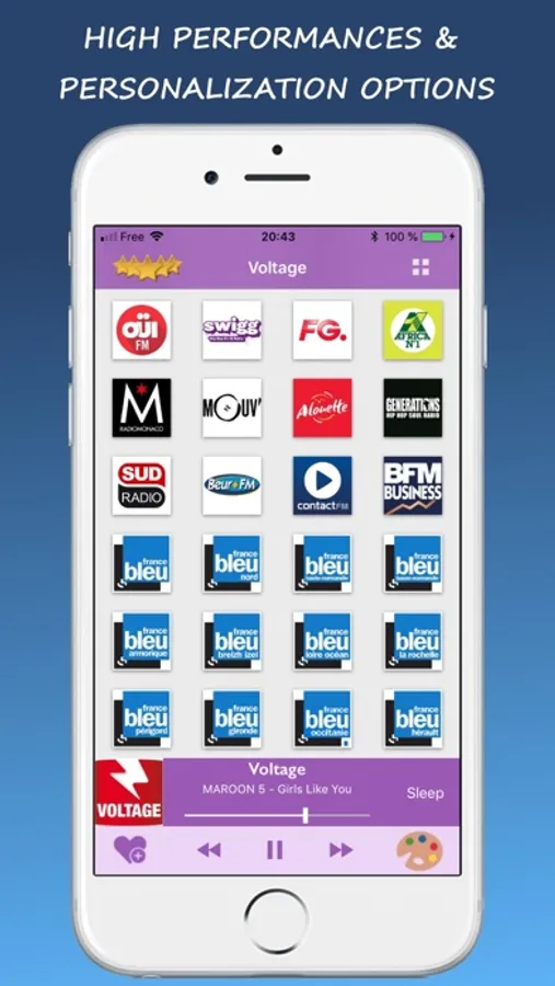 Our app is totally free. All radio stations and all functionalities are available without restrictions!