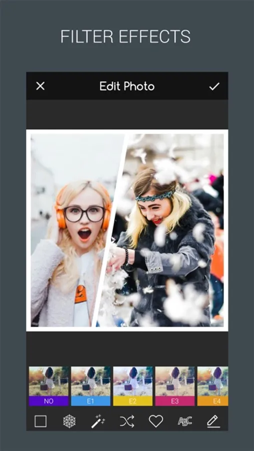 Pic collage maker contains beauty 25 unique filter effects to change photo's color, random effect for each photos on photo grid, your photos will look like gorgeous and amazing.