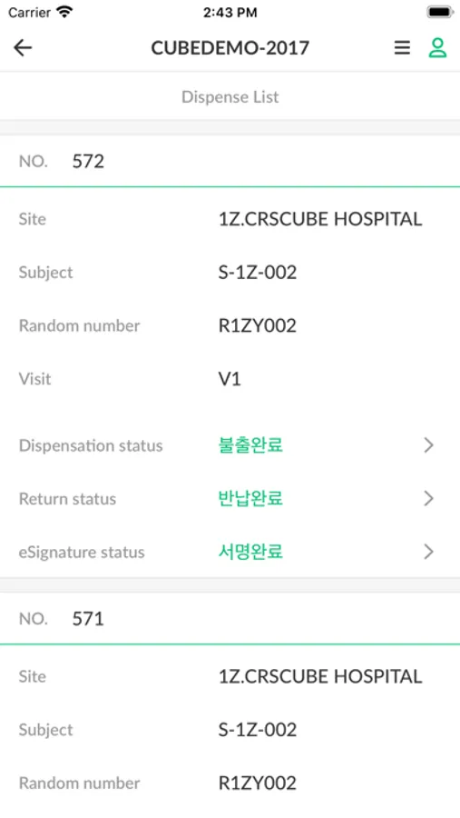 - Provides a list of participating trial subjects and an option to view or modify dispense, return and CRA Signature.