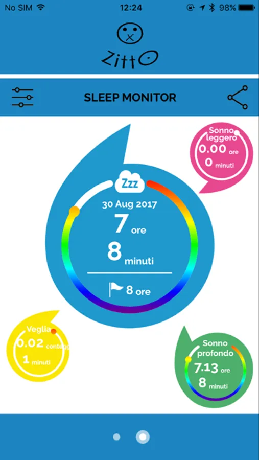 3 - ACCENDI L’OROLOGIO TENENDO PREMUTO IL PULSANTE TONDO. APPARIRA’ IL LOGO “ZITTO”.