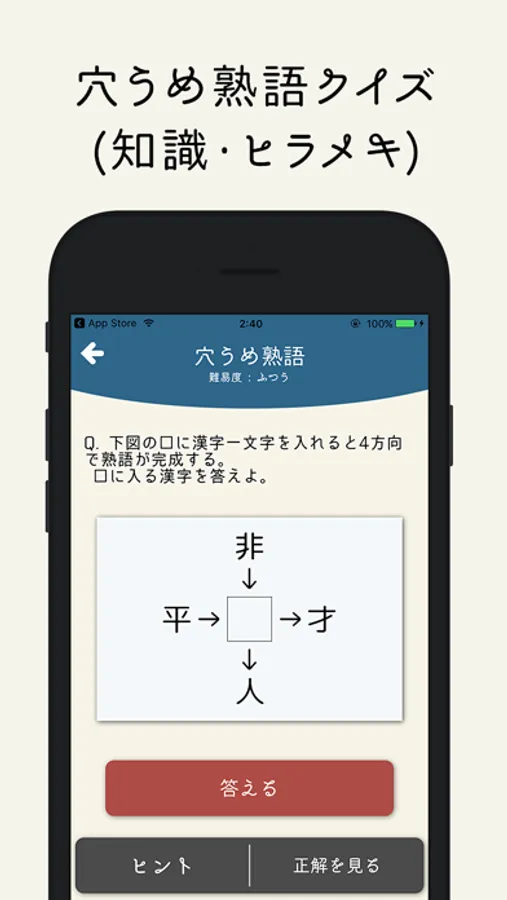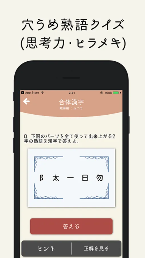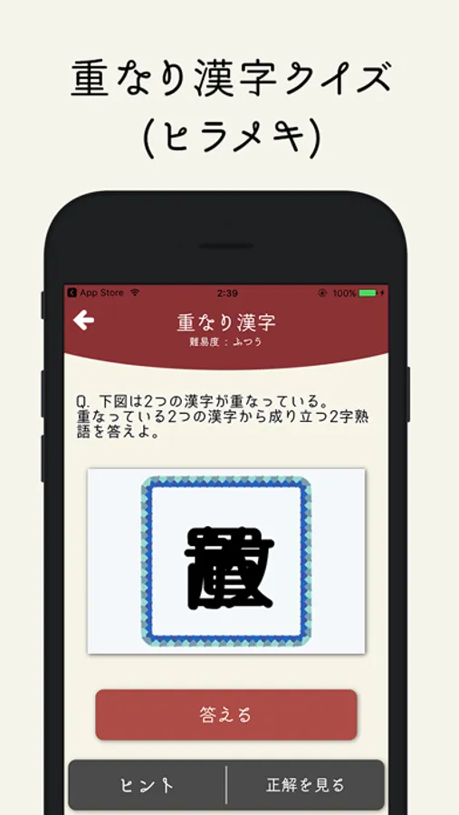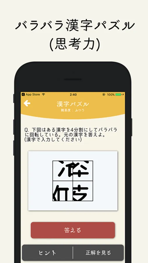 ・答えを見れば「なるほど!」と思うのになかなか閃けない問題を集めた漢字脳トレアプリです。