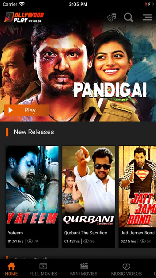 Dollywood Play is the only app in HINDI and ENGLISH for Hindi dubbed South Indian and Hollywood movies.