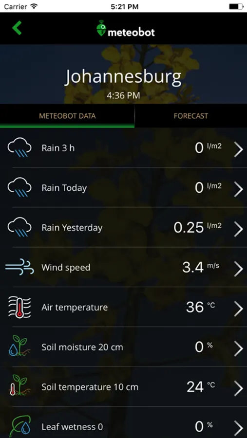 Meteobot is a weather station app, specialized for precision farming. It gives you real-time information about the weather and soil conditions in your fields – directly from your Meteobot weather station.