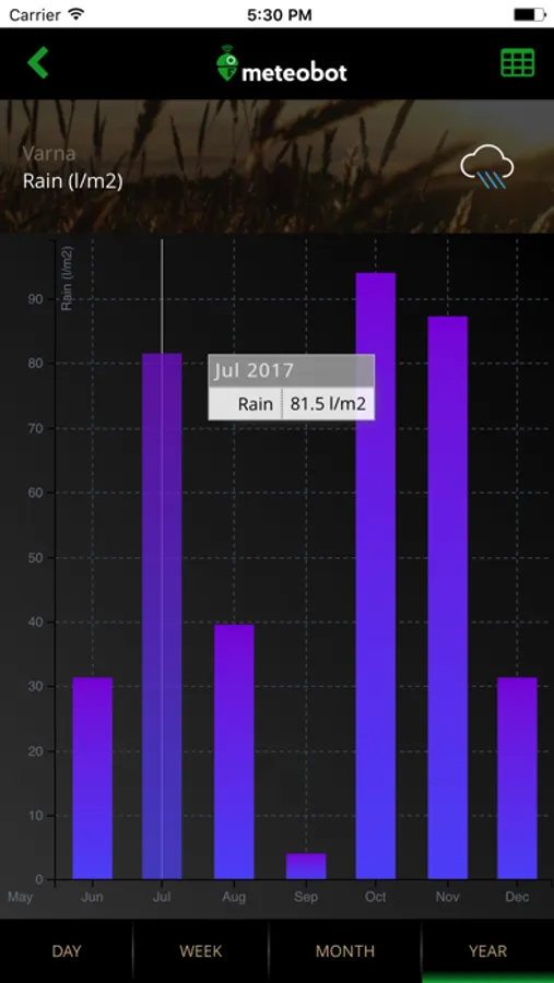 Because Meteobot is specialized for farming, it keeps weather stations data in your fields’ history. The only thing you need to do is to outline the boundaries of your fields on the map. Once you have done it, you get a complete agro-meteorological history from the moment a weather station was installed nearby. The main advantage of Meteobot is that you receive data from your own weather station (or from another one nearby), and not from a weather device miles away from your land.