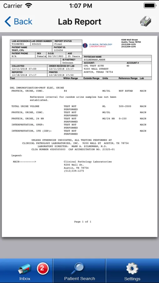 This application requires the provider be a registered Atlas LabWorks® user. If you are a user associated with more than one site, you will have the option to select applicable location at log in. If you are not a registered Atlas LabWorks® user, contact your laboratory representative to learn more about the Atlas LabWorks® and CPLSW Lab. This application does not store any patient information on the device, ensuring patient confidentiality and security.