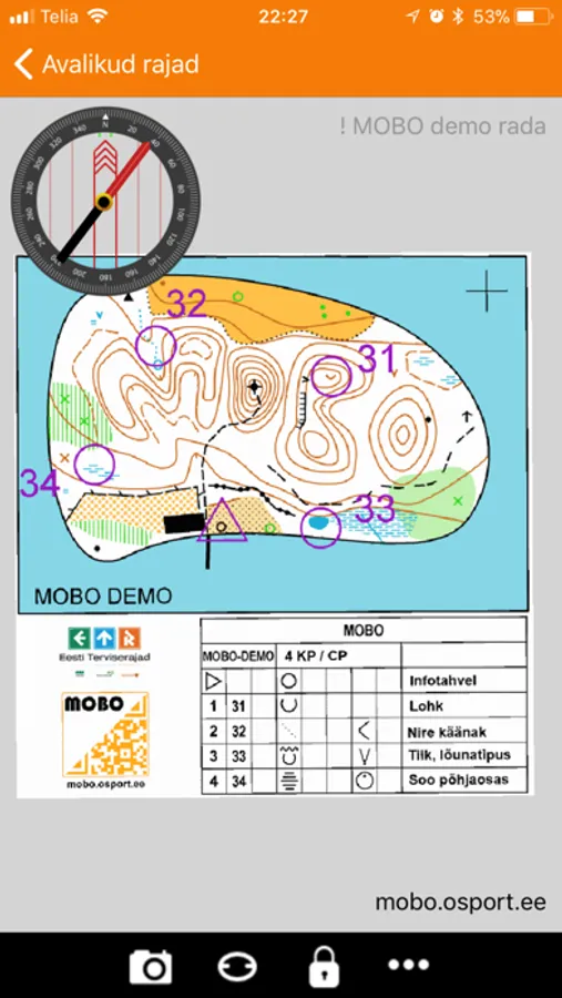 MOBO is modern way to practice orienteering sport. Today's smartphone is 3-in-1 device for orienteer – map, compass and punching device all in one package. Still you need basic orienteering skills to complete courses- maps in phone are standard orienteering maps and for navigation you need to use built-in on-screen compass. There are special signs in controls points with QR code. Punch information will be sent to server where you could see statistics of MOBO users.