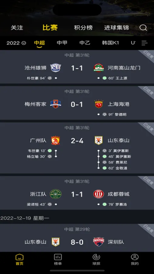 包含赛事:英超,西甲,德甲,意甲,法甲,J联赛,韩国K1,中超,中甲,中甲预备队,中乙,女超,女甲,中丙,中国杯,亚锦赛,亚冠,世界杯等。