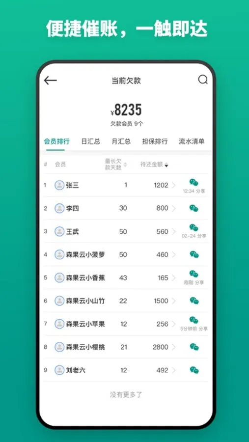 ● 查欠账,累计赊账、已还款、待还款记录清晰