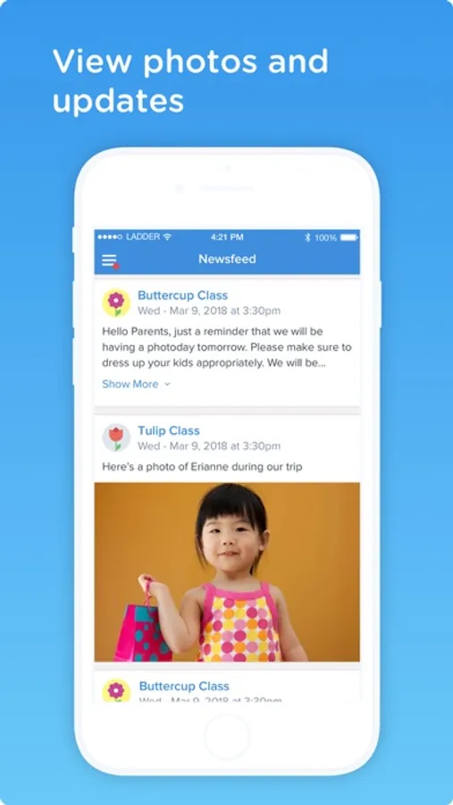 - View pictures and updates of their children through the Newsfeed and Daily Logs section
