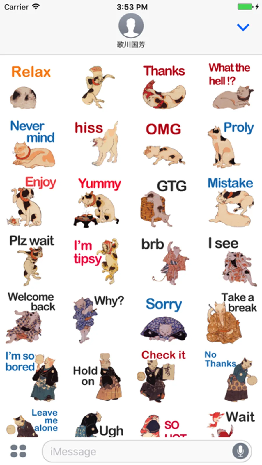 Cats Stickers which Kuniyoshi Utagawa drawn.