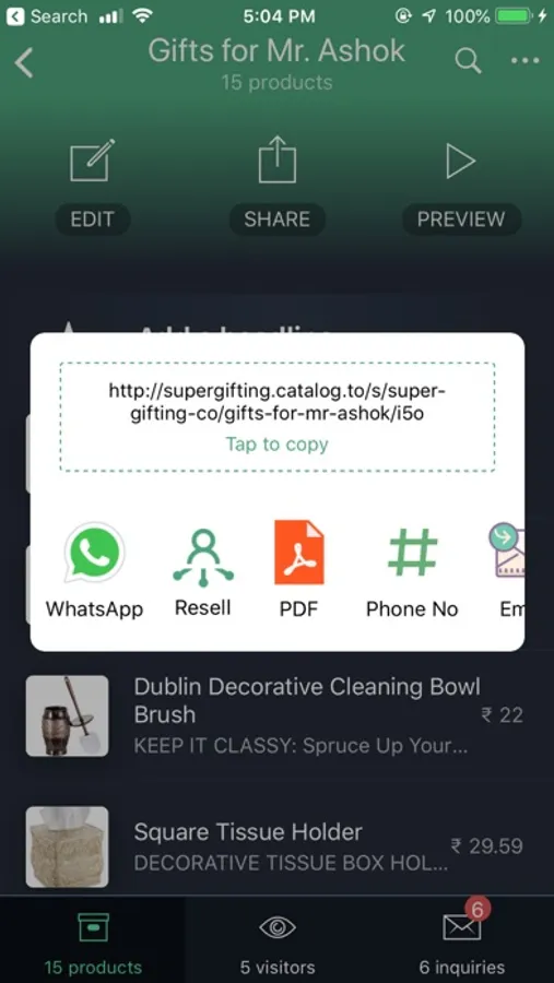 You can share the catalogue as a link on WhatsApp, Facebook or SMS. Create a good impression