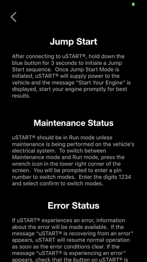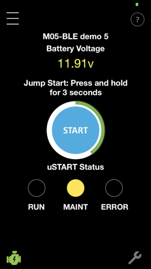 uStart® bluetooth remote control Application. Allows users to connect to uStart® units through bluetooth. Application shows important information such as voltage, current mode, and battery charge. This application will also allow the user to start a jump start with the uStart®
