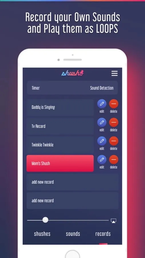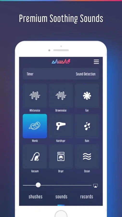 • Select a shush, sound loop or a recording and it will play as long as you like