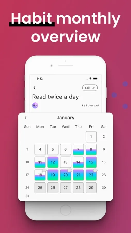 Form new daily habits for better productivity, to new life habits for better health, the possibilities are endless. Creating habits has never been easier than with our habit building app.
