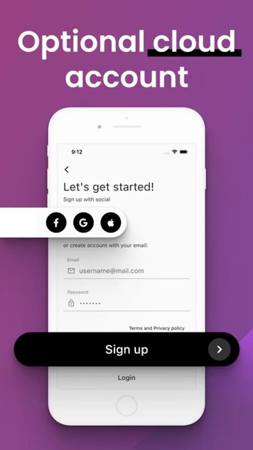 • Optional account creation - preserve your data if you want, just create an optional account