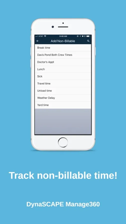 The paperless landscape crew is here! Crew leaders are empowered to track their crew's progress by clocking in and out of jobs. They can track their time, materials, equipment, and sub-contractors. A companion app to DynaSCAPE's Manage360, crews will have a live link to the back office. When jobs, work orders, maintenance visits, snow visits are added to the crew's timesheet they will automatically appear on their to do list.