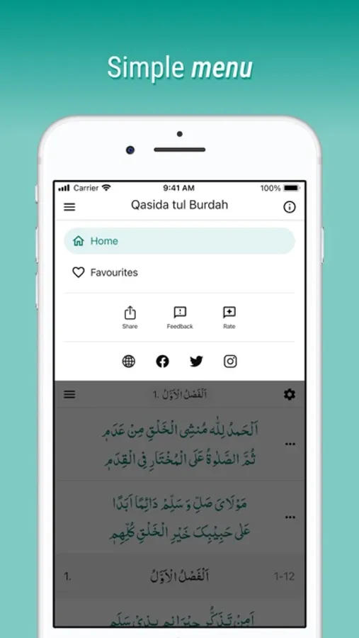App provides ability to read Qasida tul Burdah with a friendly interface.