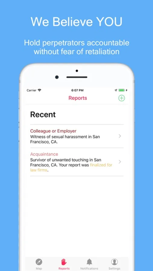 JDoe is a cutting-edge (patent pending) platform built for and by survivors. We want to thank you, not only for taking the time to look us up, but for joining us in the fight to be heard. We want you to know that we believe you, and we believe in building a space that is safe for you to report your experience, regardless of whether you choose to share it or not.