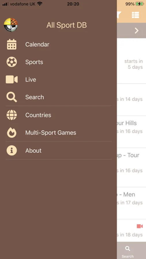 All Sport DB App displays calendar of world sport events.