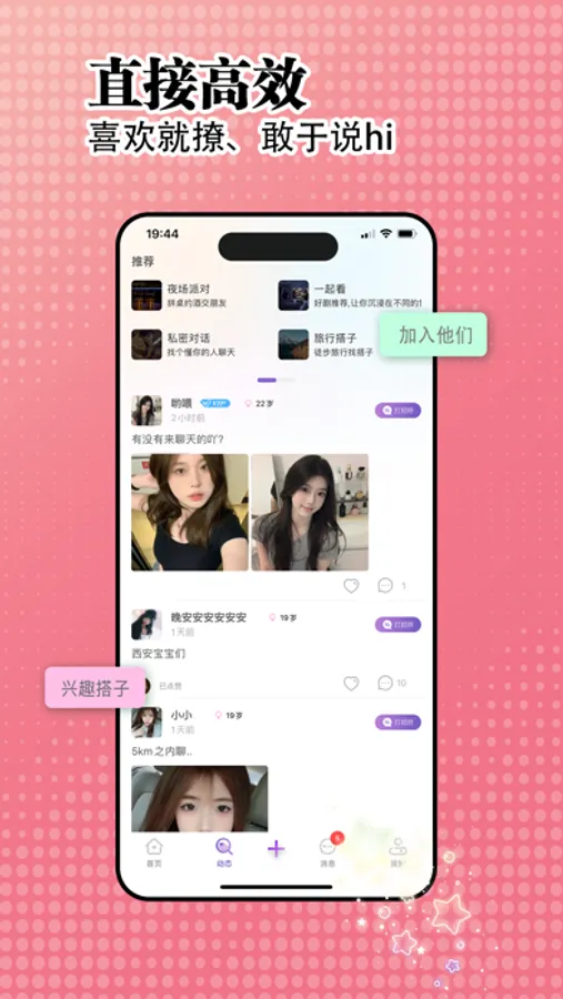 在这里有高颜值、高情商真实的同城用户等待与你相遇,来寻找你的另一半灵魂吧~