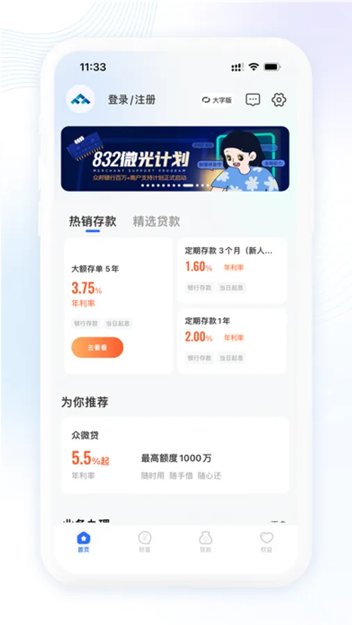 众邦银行APP围绕“存、贷、投”金融产品体系,满足用户多样化投融资及便民生活服务类需求。