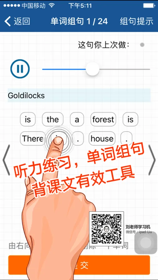 词汇听写功能:家长可点击词汇原音,让学生进行听写,避免家长不正确的发音。