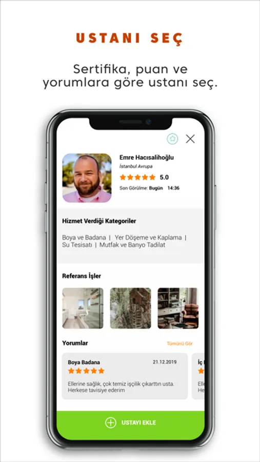 Ustabilir ustaları ve usta arayanları bir araya getiren ücretsiz ve komisyonsuz mobil platformdur. Ustabilir’de tesisat, dekorasyon ve dış mekan alanlarında uzman, binlerce usta arasından ihtiyacına en uygun ustayı hemen bulabilirsin. Puan, yorum ve sertifika bilgilerine göre ustaları seçebilir, iş bitiminde kendi değerlendirmeni de yapabilirsin. Ayrıca beyaz eşya yetkili servis ihtiyaçlarında Arçelik, Beko, Grundig ve Altus çağrı merkezlerine anında ulaşabilirsin.