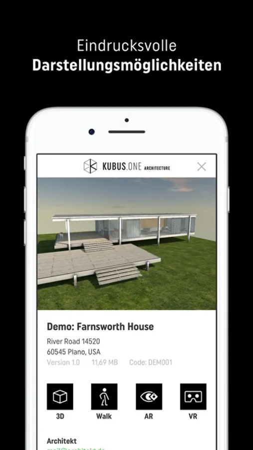 Laden Sie sich die kostenlose KubusOne Architecture App auf Ihr Smartphone oder Tablet.