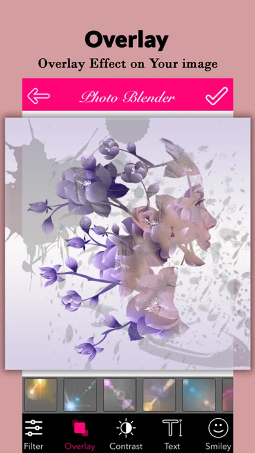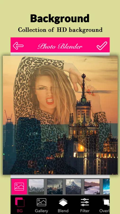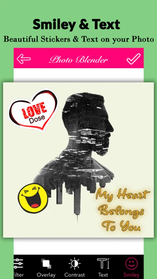 It blends two of your Photos into a single Photo. With the PhotoBlender - Double Exposure app you can create an amazing poster of your photo by blending them into one.