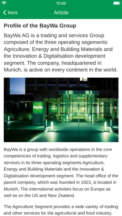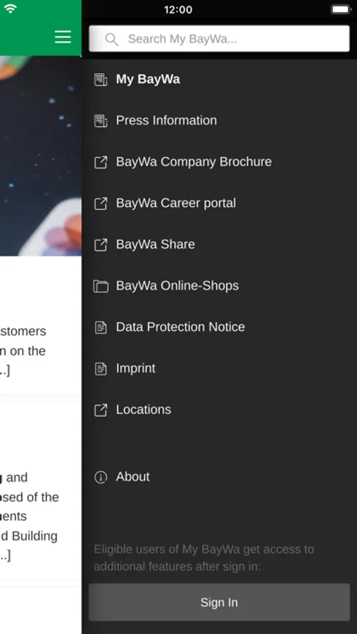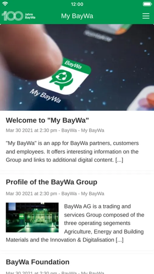 "My BayWa" is an app for BayWa partners, customers and employees. It offers interesting information on the Group and links to additional digital content.
