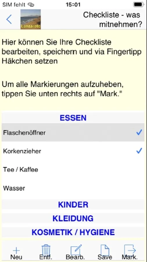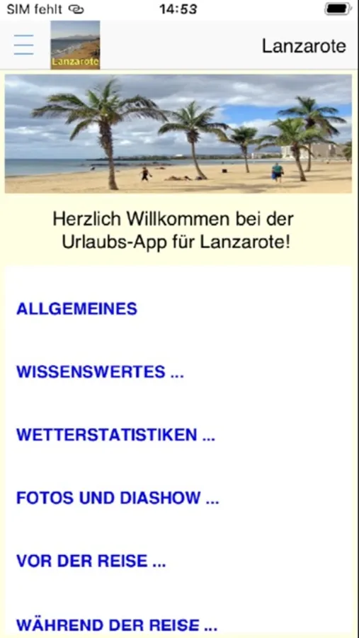 Die Lanzarote -App und enthält u.a. Reise-Checklisten für Ihre Reiseapotheke und Ihr Urlaubsgepäck, welche Sie auch selber verfeinern und im nächsten Urlaub wieder benutzen können. Zusätzlich können Sie sich die wichtigsten statistischen Klimadaten ansehen und mit anderen Urlaubsregionen vergleichen. Ausserdem ist eine kleine Diashow und eine Sammlung von relevanten Webseiten für die Region vorhanden und gibt Ihnen die Möglichkeit, Informationen, die für Ihren Aufenthalt auf der Insel oder für Sie als Fan von dieser wunderschönen Gegend interessant sind, möglichst bequem im Internet abzurufen: