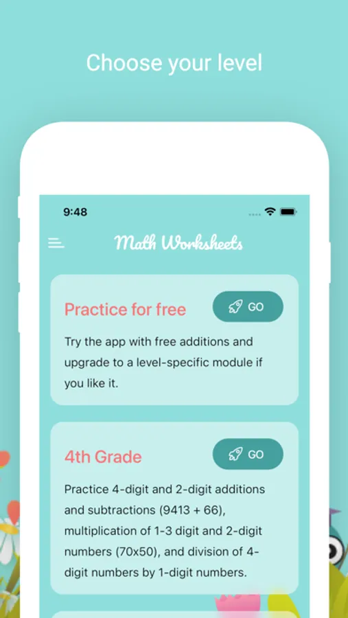 Unlock the full potential of your child's math skills with our educational app that's not only effective, but also incredibly fun to use! Whether your child is in 4th, 5th or 6th grade, our app offers free worksheets and optional in-app purchases tailored to their level. Give it a try for free and see the results for yourself.