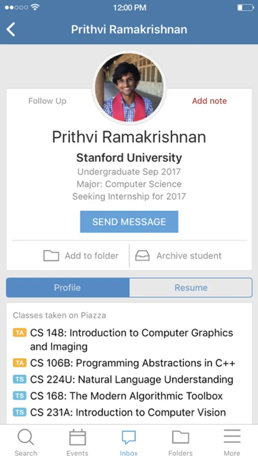 Piazza Careers for recruiters is a recruiting app to help employers find and engage emerging young talent. The app enables you to source and view student profiles, create folders, message students directly, review referrals, edit event postings, and manage check-ins.