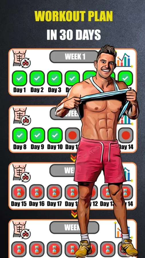 • Benefit from structured 30-day workout routines specifically designed to sculpt six-pack abs and cultivate a stronger physique.